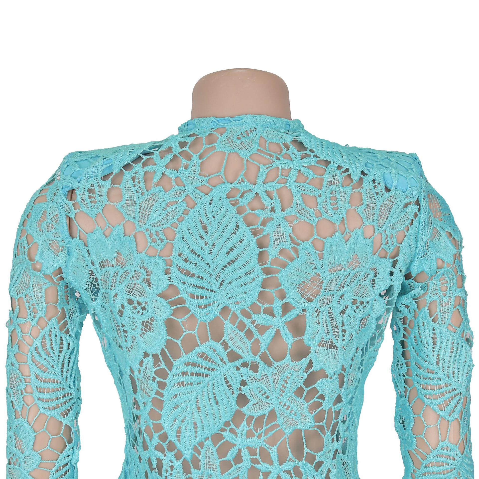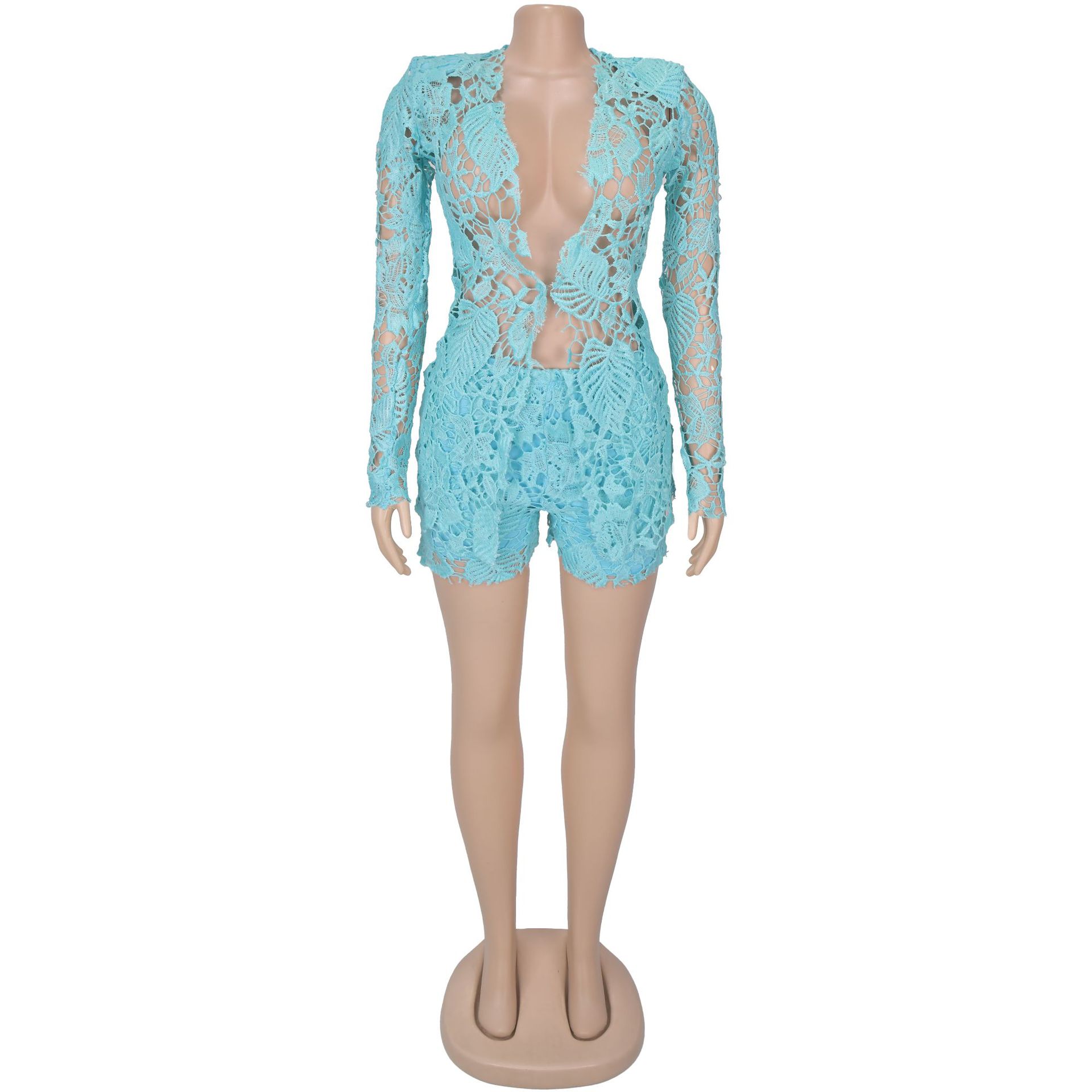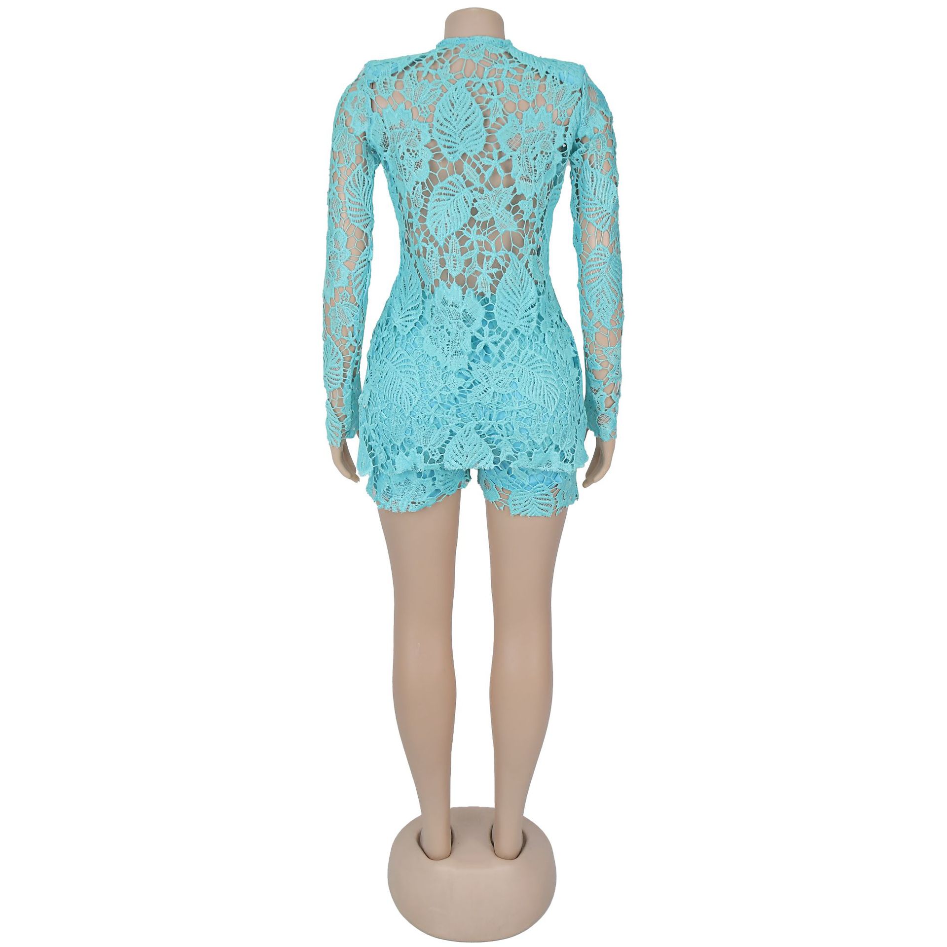 A two-piece set of hollowed-out solid-color shirt, long sleeves and shorts