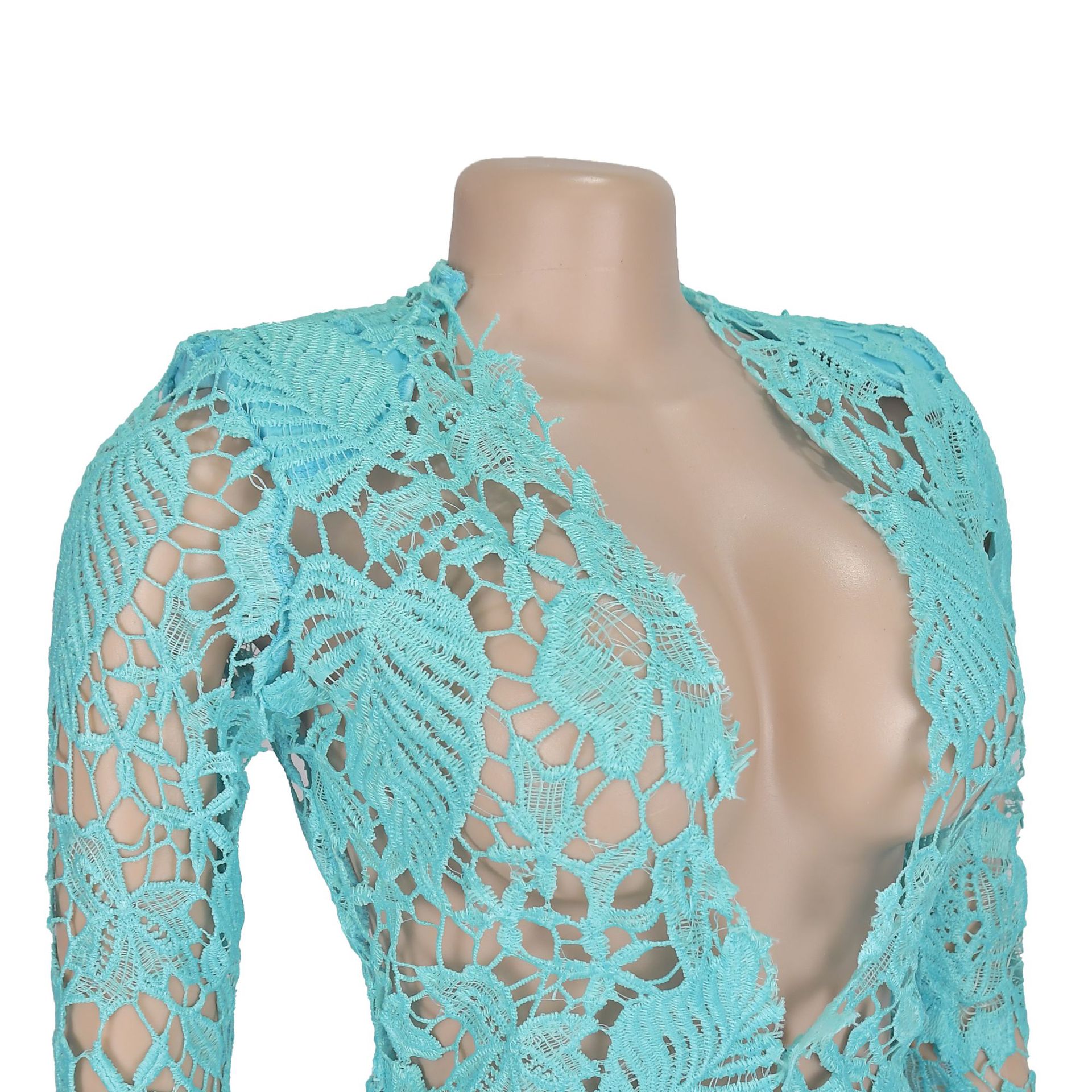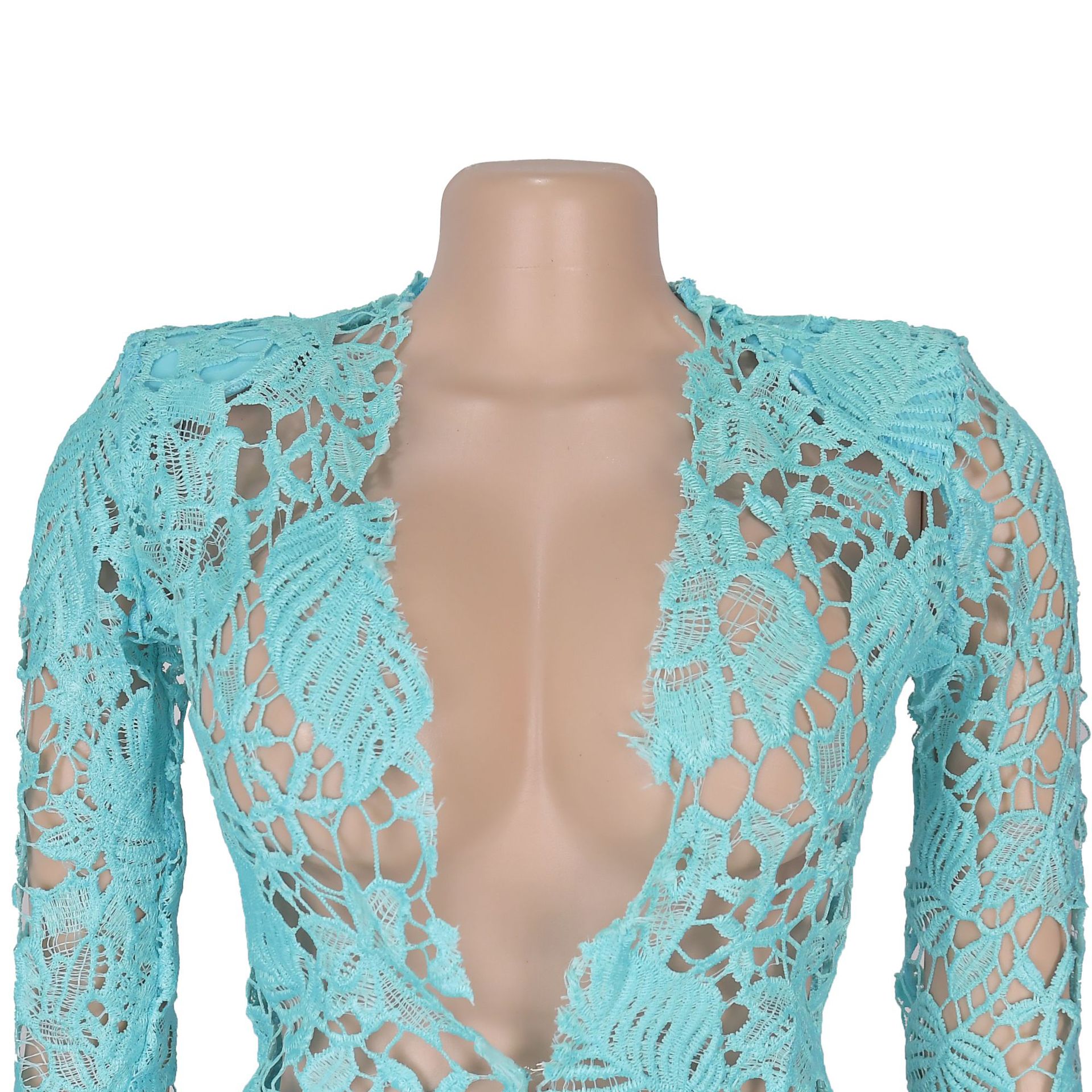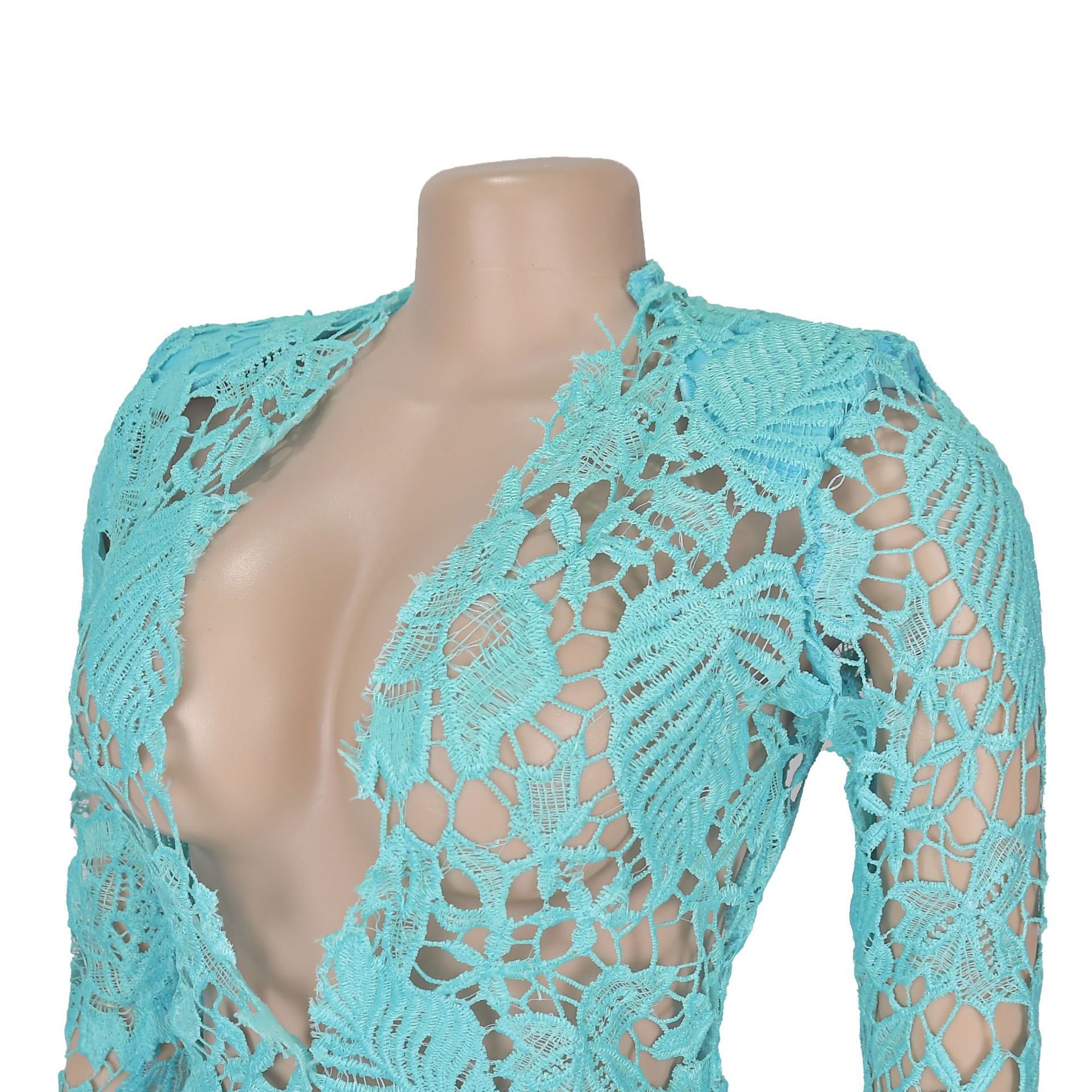 A two-piece set of hollowed-out solid-color shirt, long sleeves and shorts