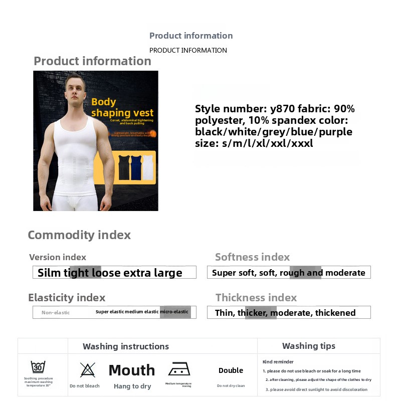 Body Shaping: Offers chest and abdominal support for a sculpted look.