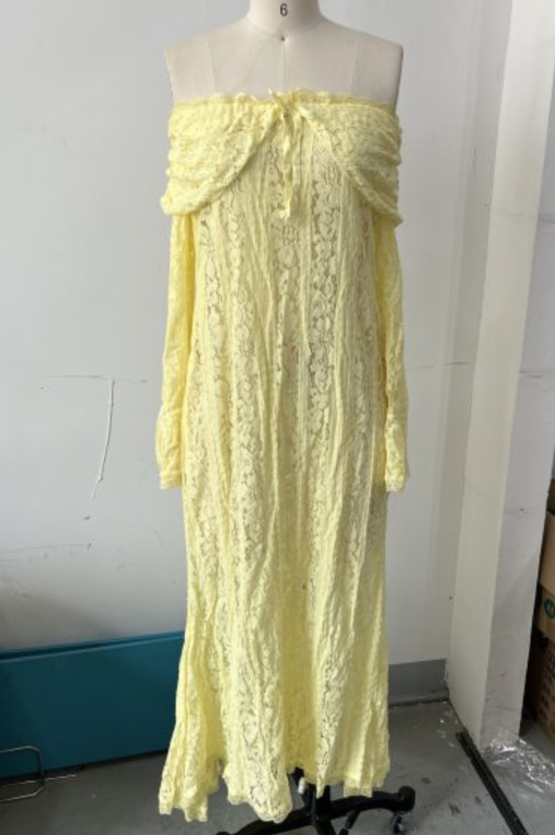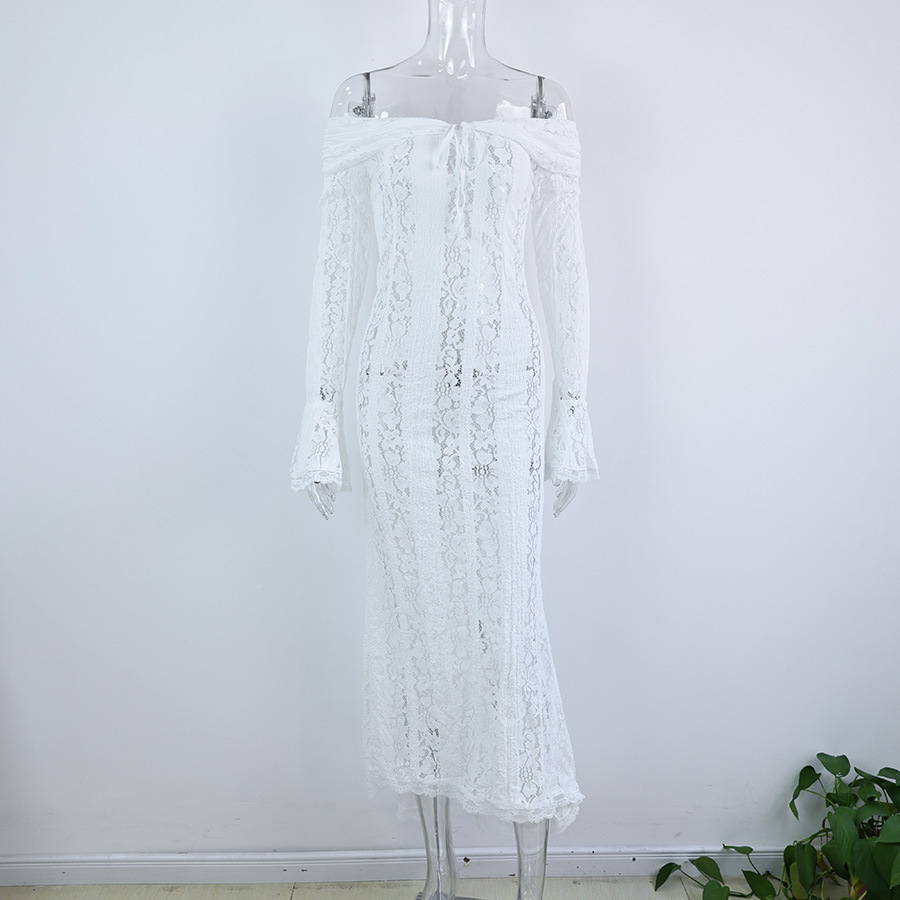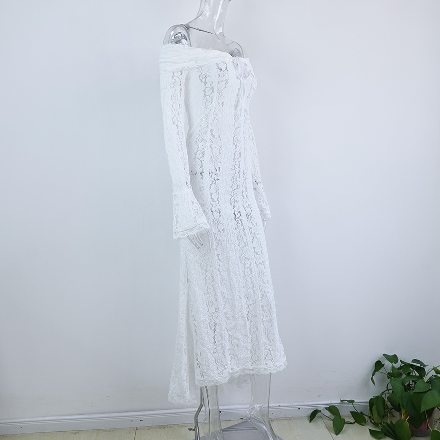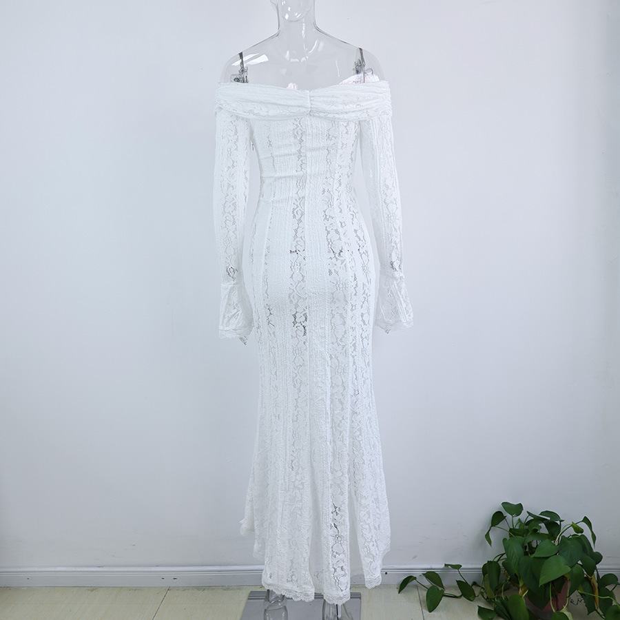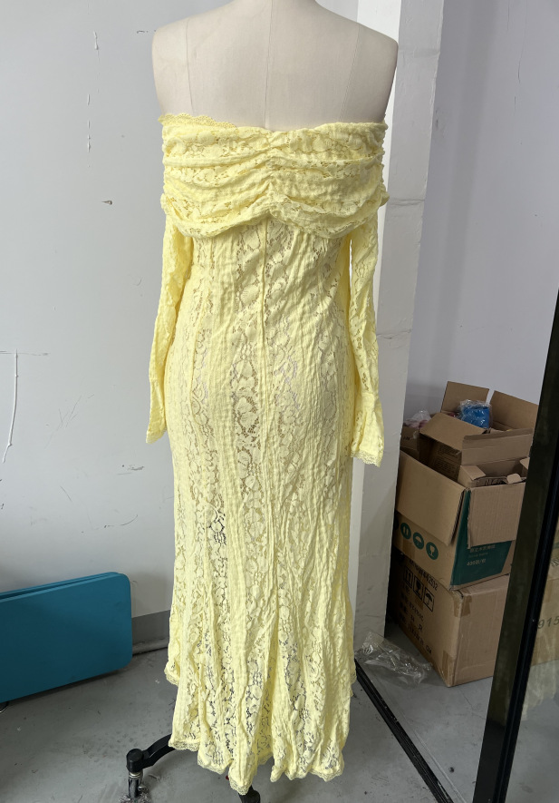 This stylish and sexy one-shoulder, cinched waist, lace long dress with trumpet sleeves is a high-end women's clothing item that combines romance and elegance. It is specially designed for women who pursue refined temperament and sexy charm. The one-shoulder cut showcases the charming collarbone, the cinched waist design outlines the perfect curves, and the combination of lace fabric and trumpet sleeves creates a fashionable style that blends retro and modern elements. It is suitable for formal or semi-luxurious occasions such as dinners, weddings, and dates.