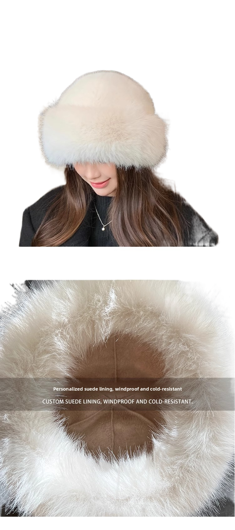 Style: Features a plush Mongolian design with fox fur accents, combining fashion and functionality.