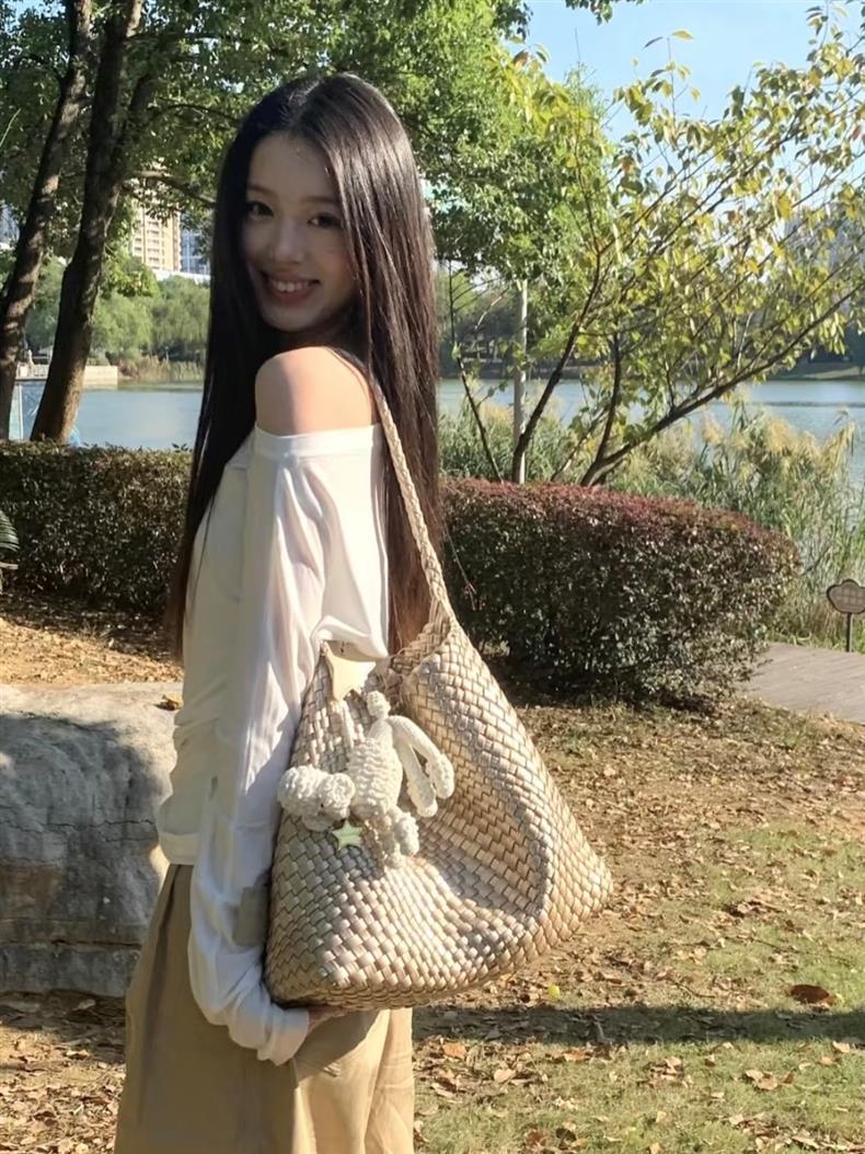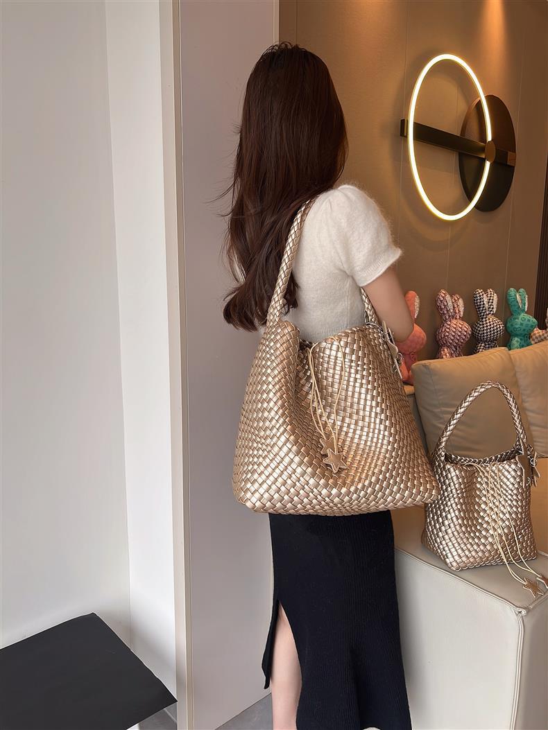 Style: Tote bag with woven elements.
