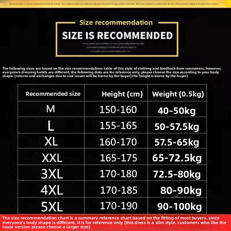 Sizes: M, L, XL, 2XL, 3XL, 4XL, 5XL