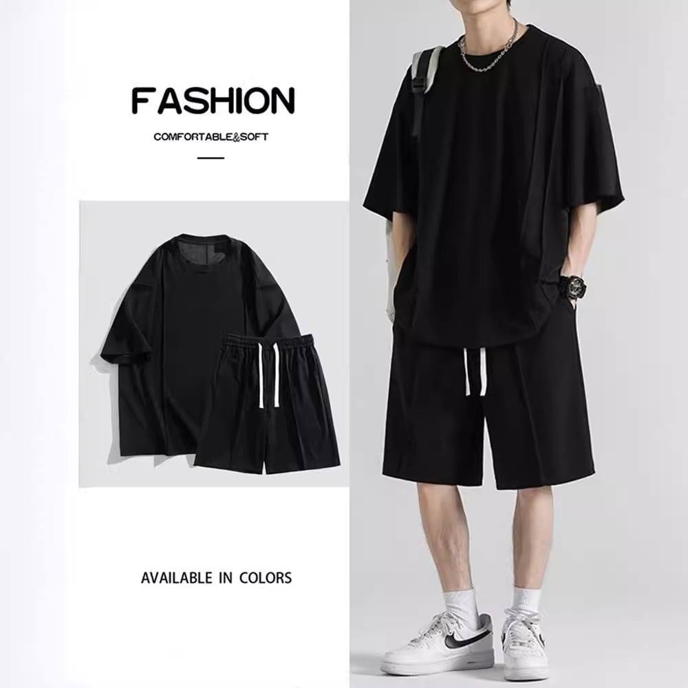 1?This 2024 new solid-color ice silk sports quick-dry couple's T-shirt leisure set is a perfect choice for men in summer.