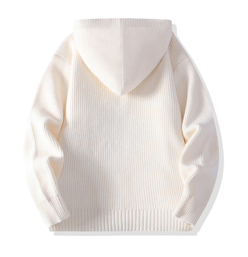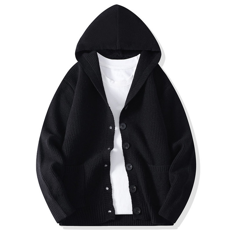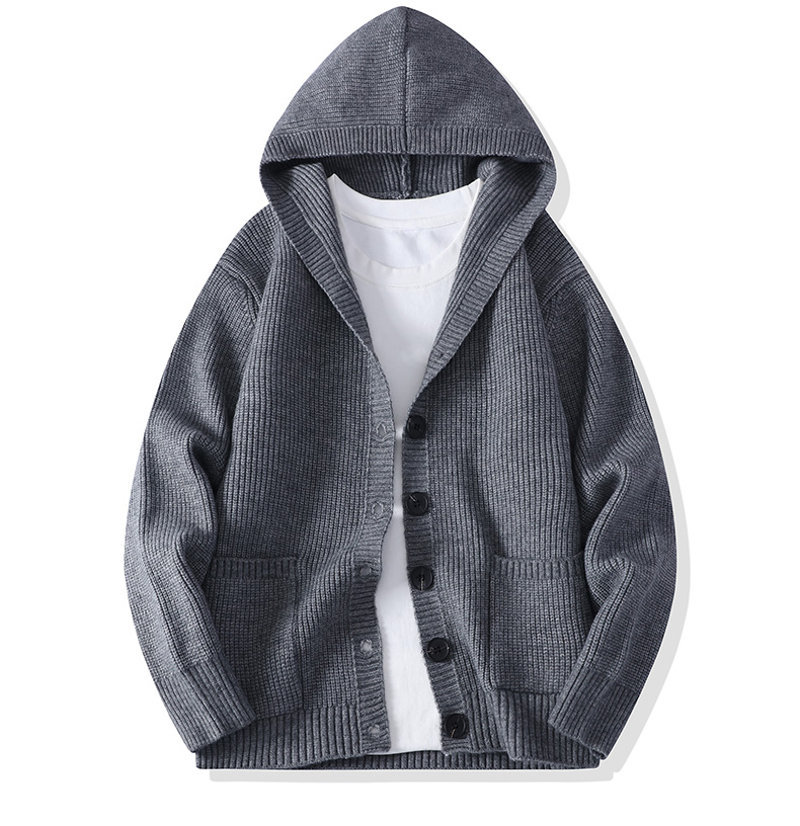 Design: Hooded cardigan with ribbed hem and badge details, combining casual style with youthful energy.