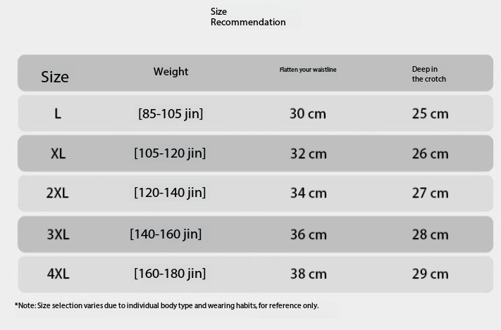 Size: L (42.5-52.5kg), XL (52.5-60kg), 2XL (60-70kg), 3XL (70-80kg), 4XL (80-90kg).