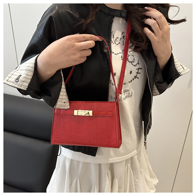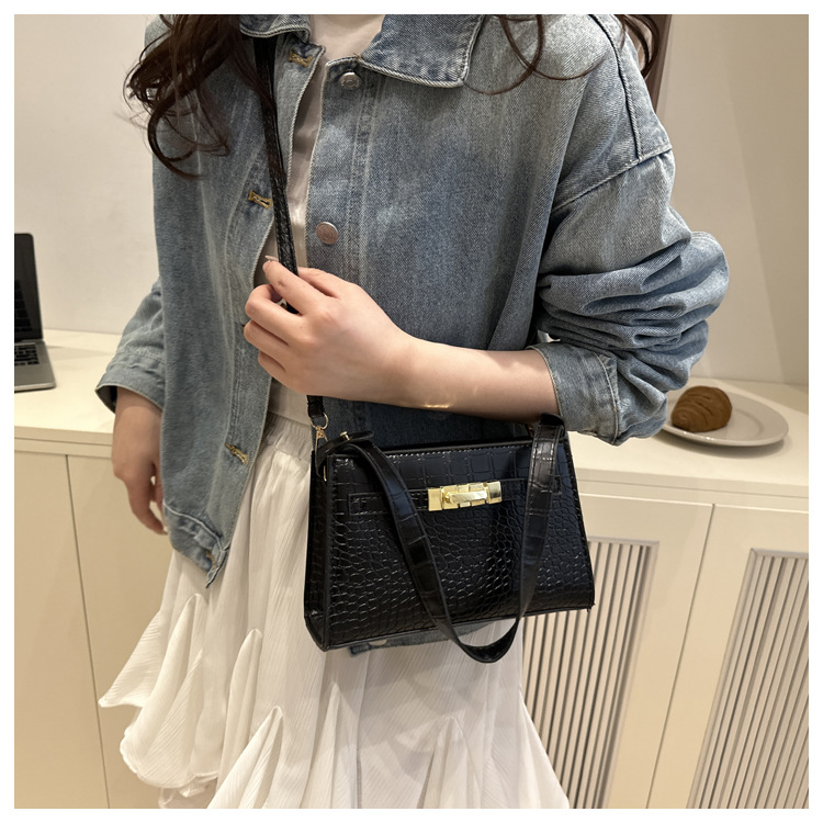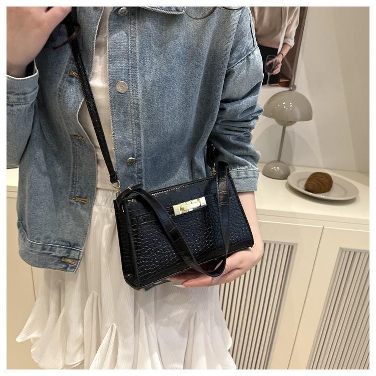 Fashionable Design: Single-shoulder women's bag with a high-end crocodile pattern, Korean-style fashion.
