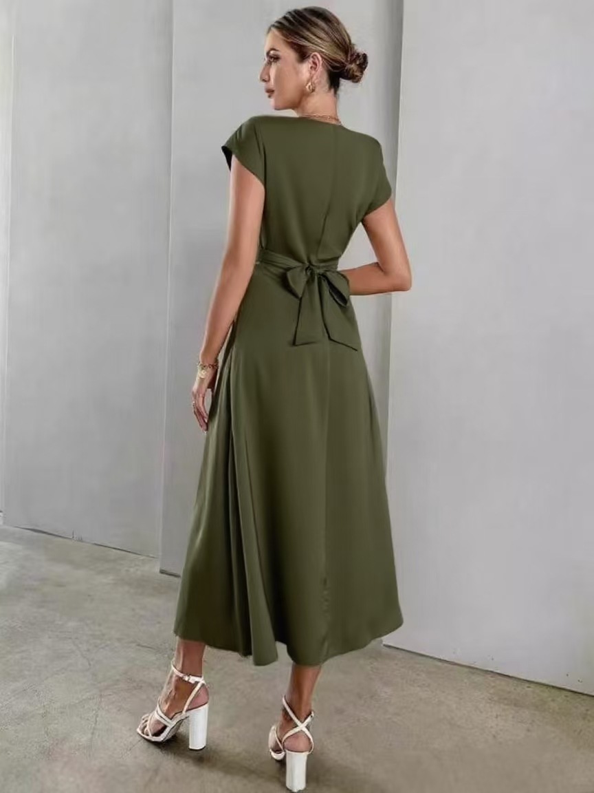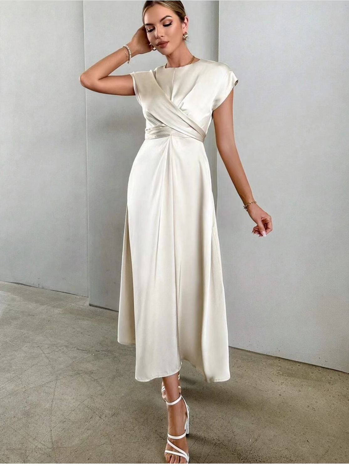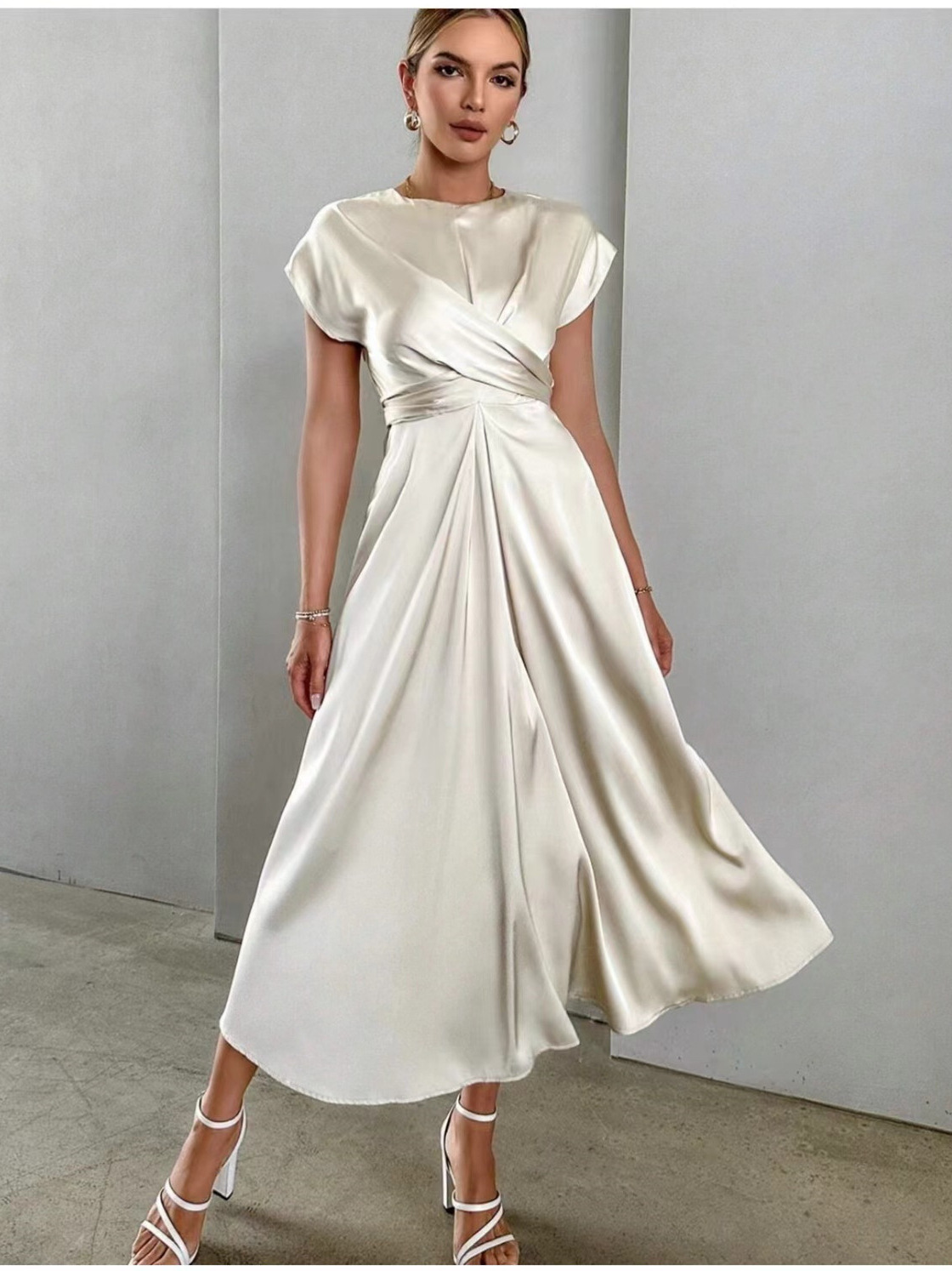 Elegant Design: High-end satin sleeves dress with a light evening dress style.