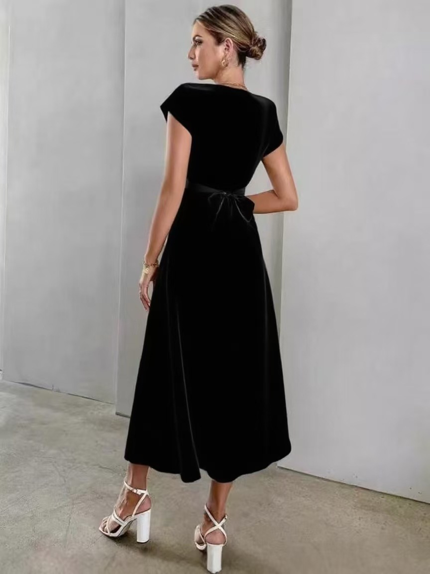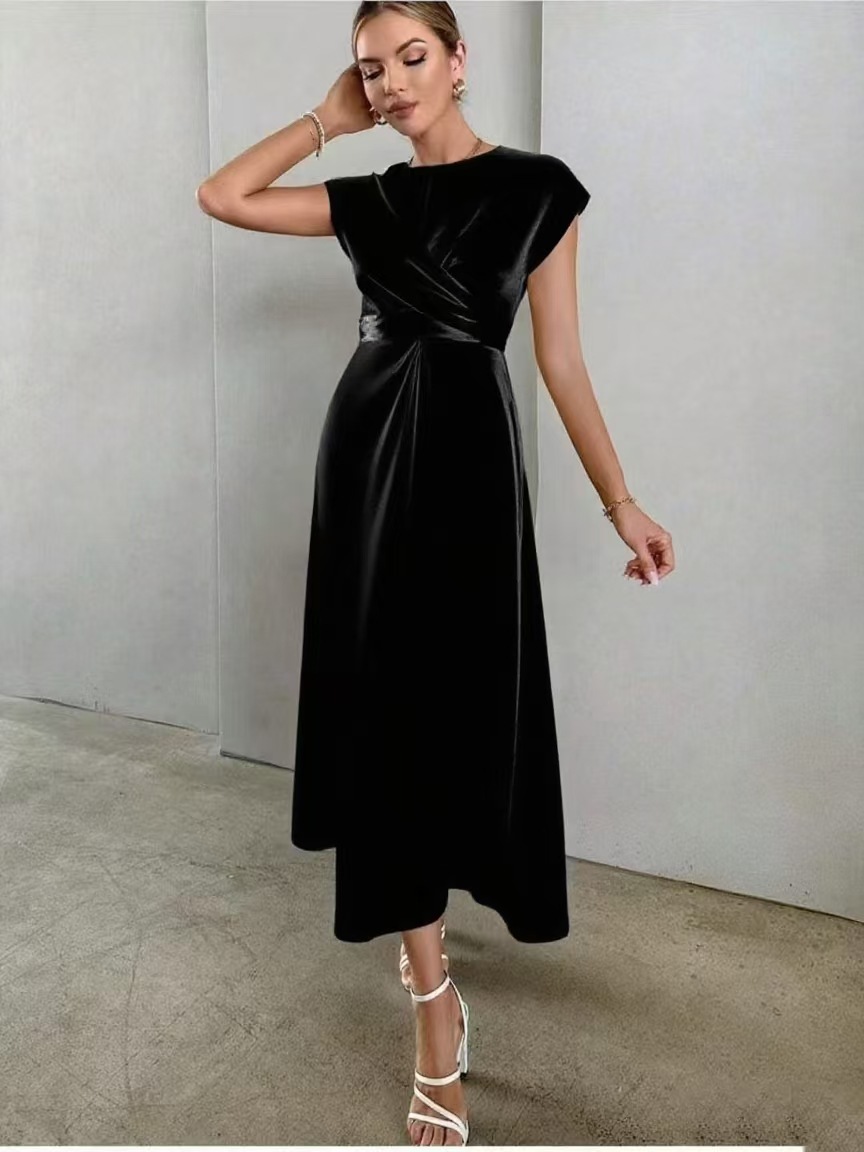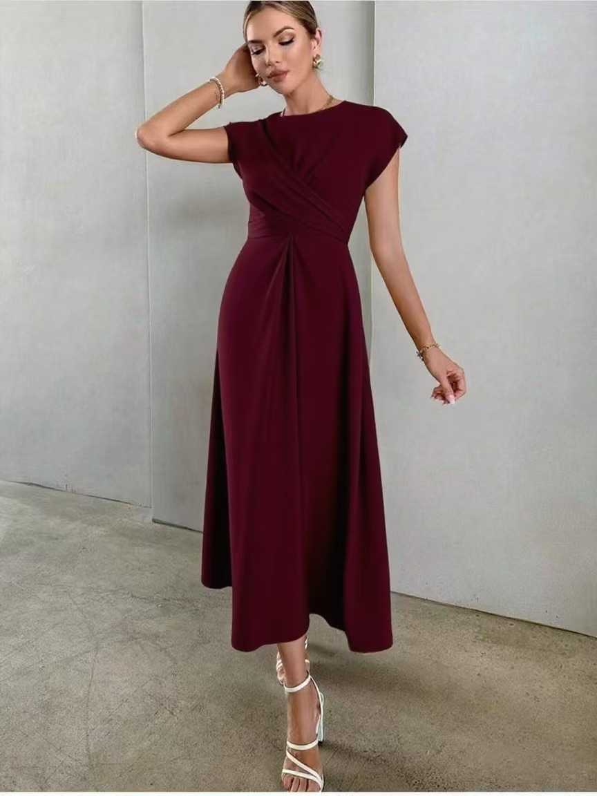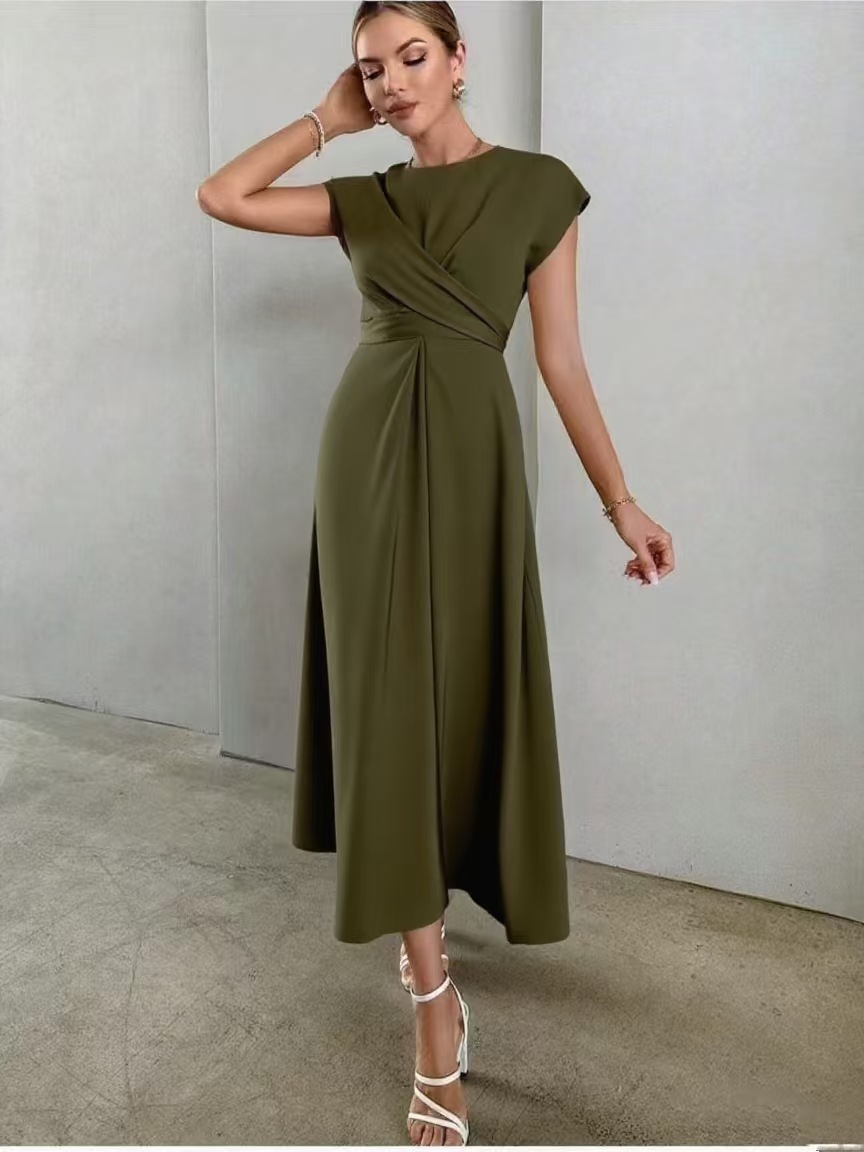Elegant Design: High-end satin sleeves dress with a light evening dress style.