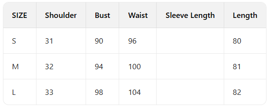 - Size Options: S, M, L.
