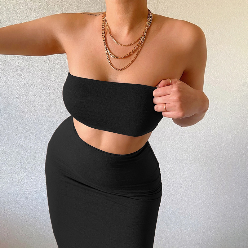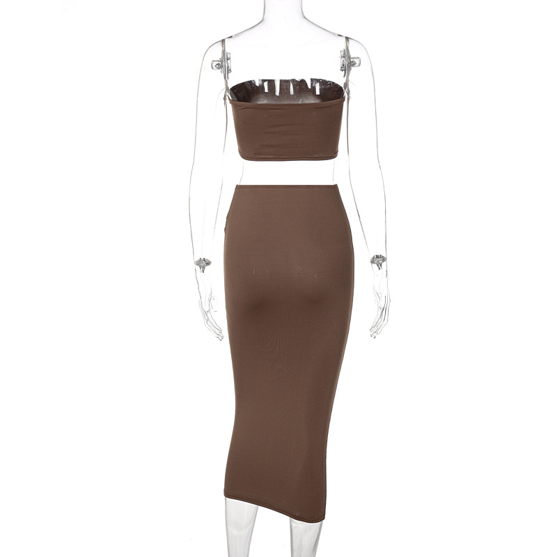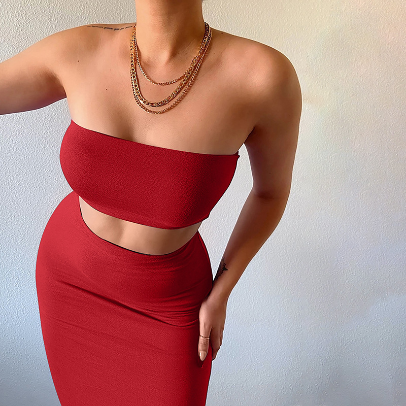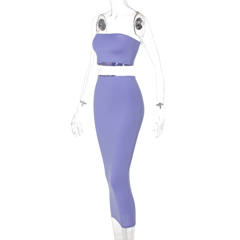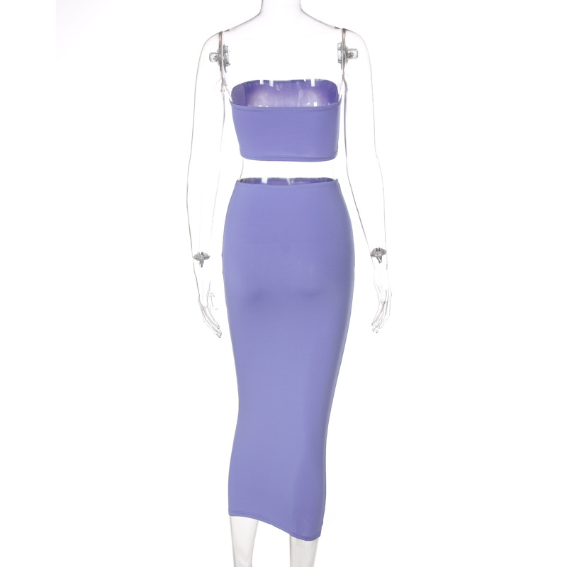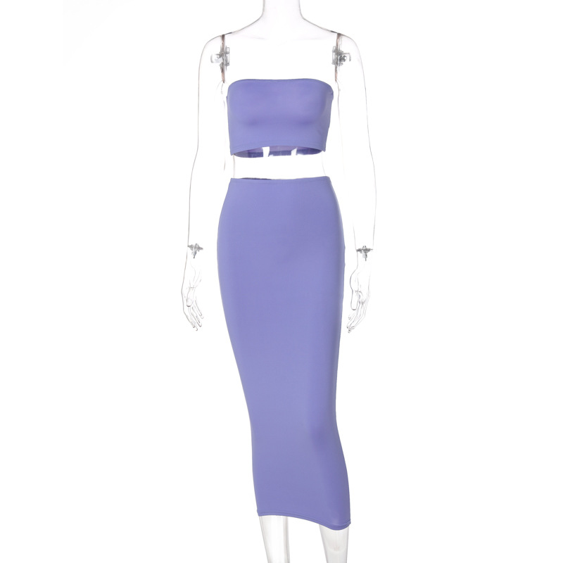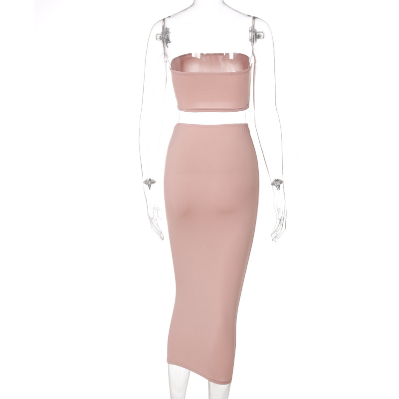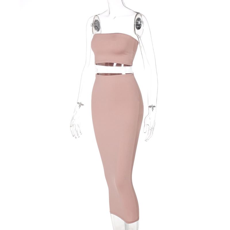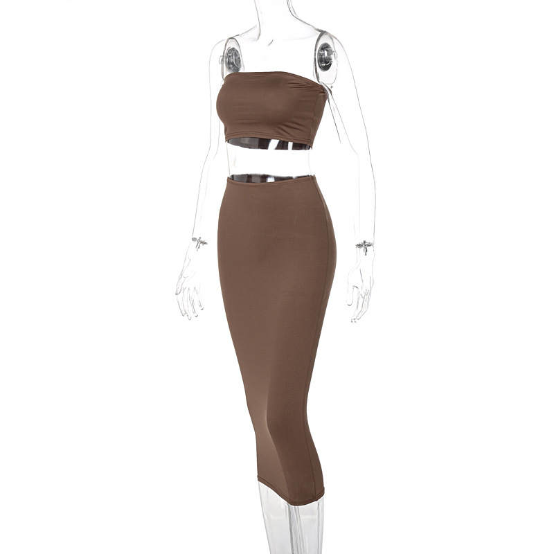 Tube Top & Skirt Set: Coordinated set featuring a tube top and mid-length skirt.