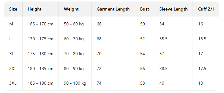 Size: M, L, XL, XXL, XXXL