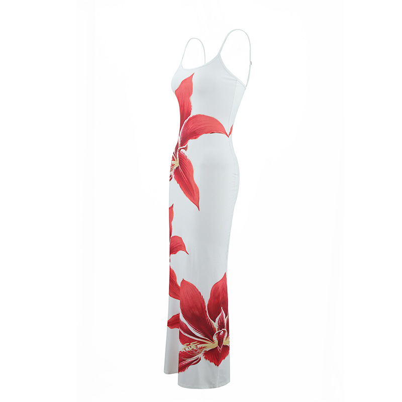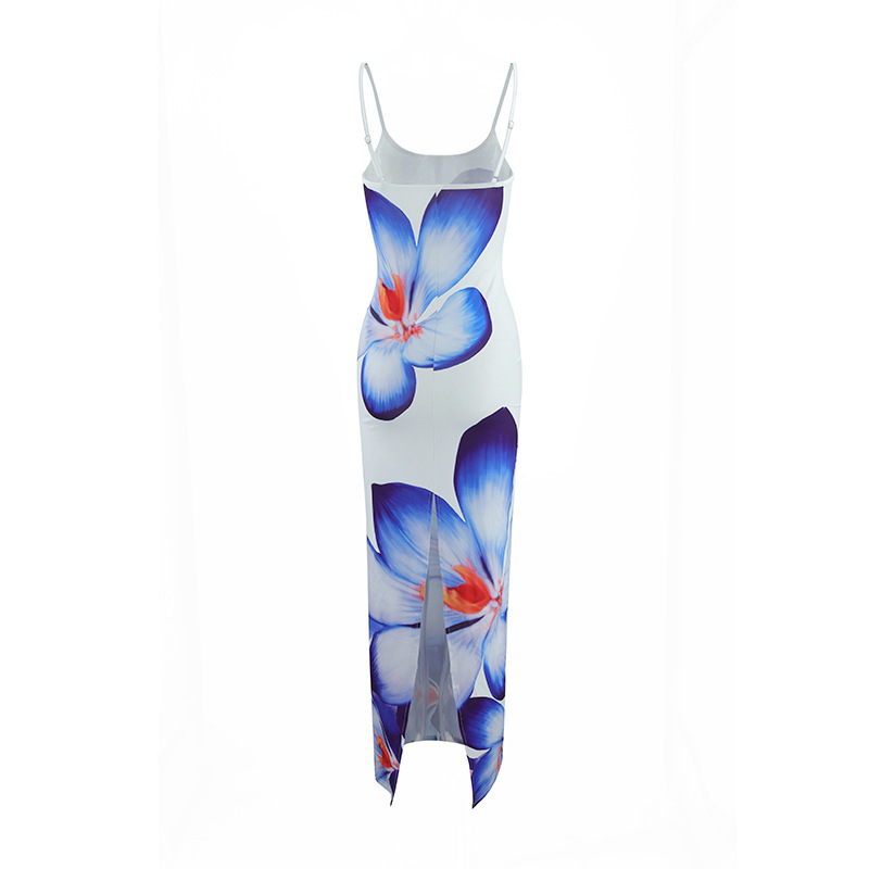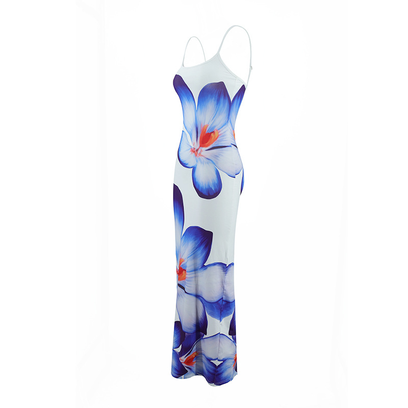 Strappy floral print fitted long dress