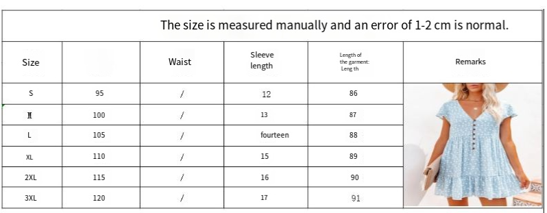 V-neck button small floral short-sleeved dress