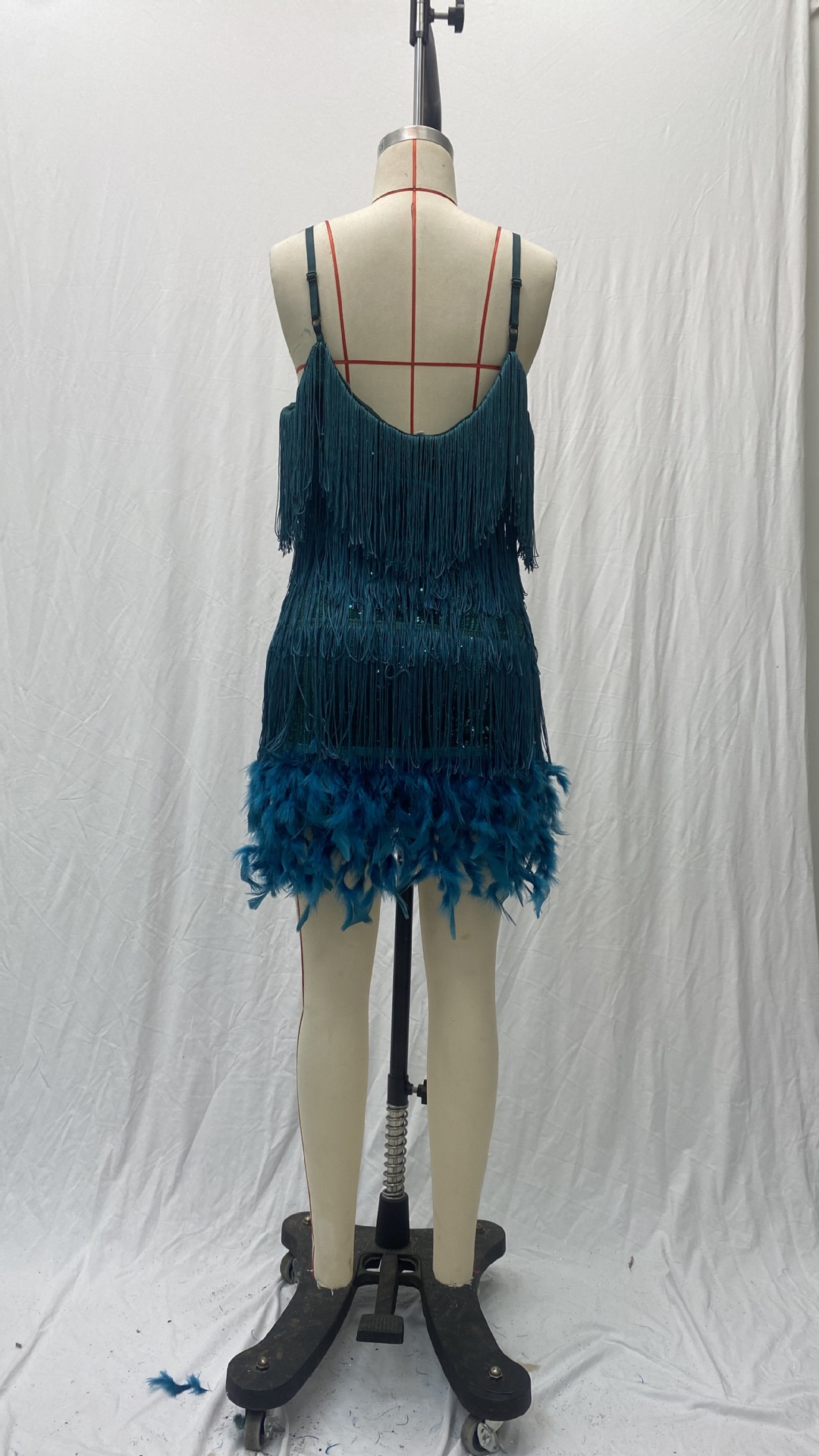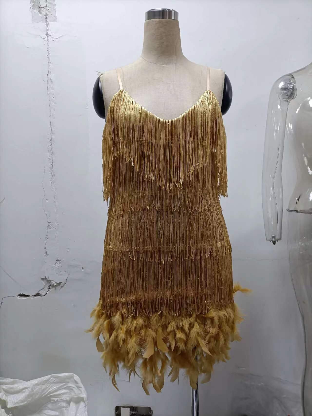 V-neck tassel sequined dress