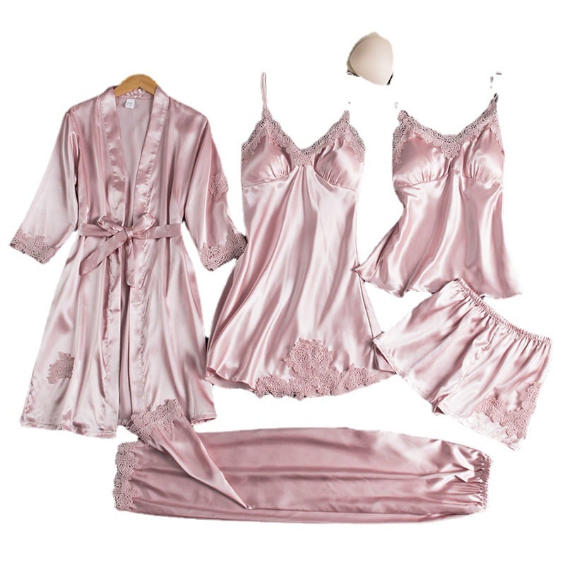 Women's Ice Silk Pajama Set Five-piece Home Clothes
