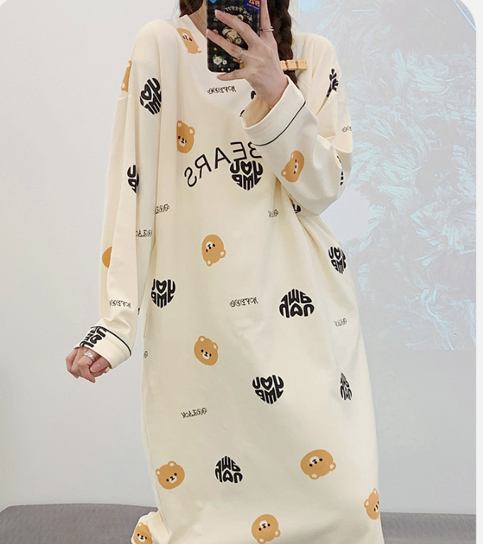Women's Pure Cotton Long Sleeve Sleep Dress