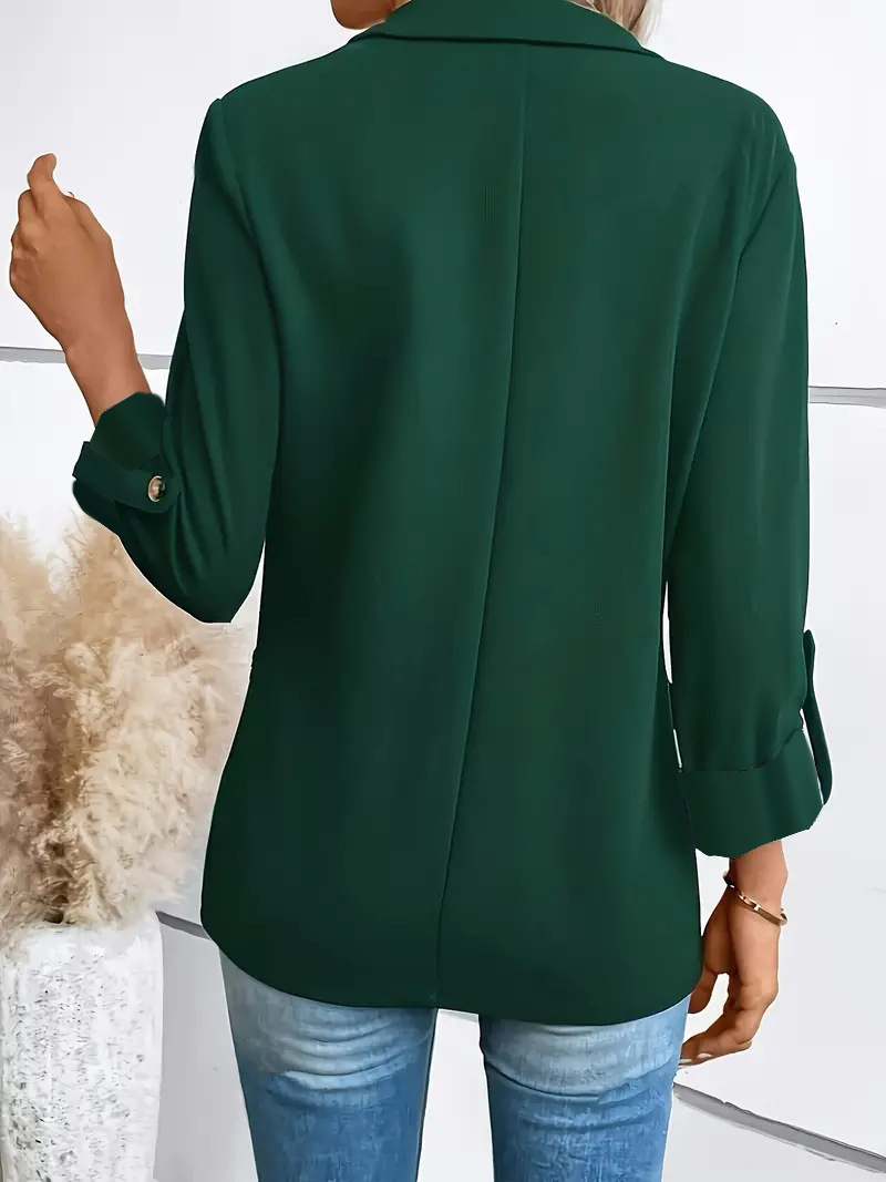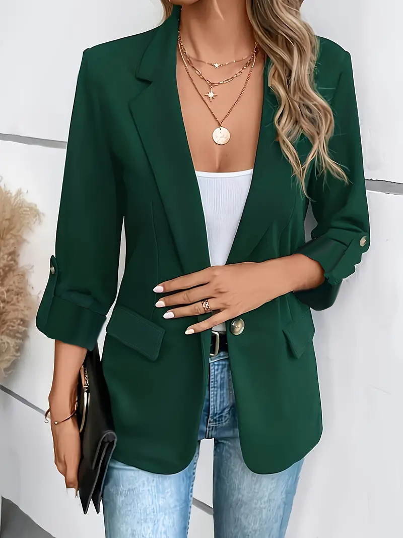 Fashionable Design: Stylish solid color long sleeve suit jacket for a trendy look.